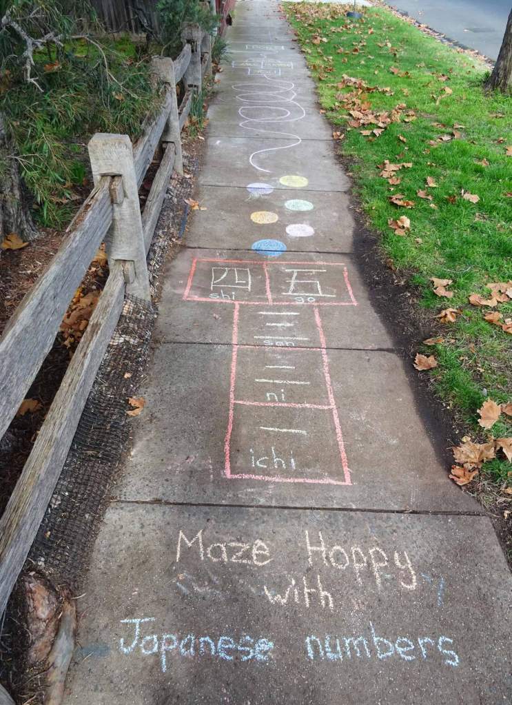 Here are some of the colourful Hopscotch patterns and trails drawn on the streets during the lockdowns. This photo gallery will grow as you send us your photos of the Hopscotch designs in your neighbourhood.